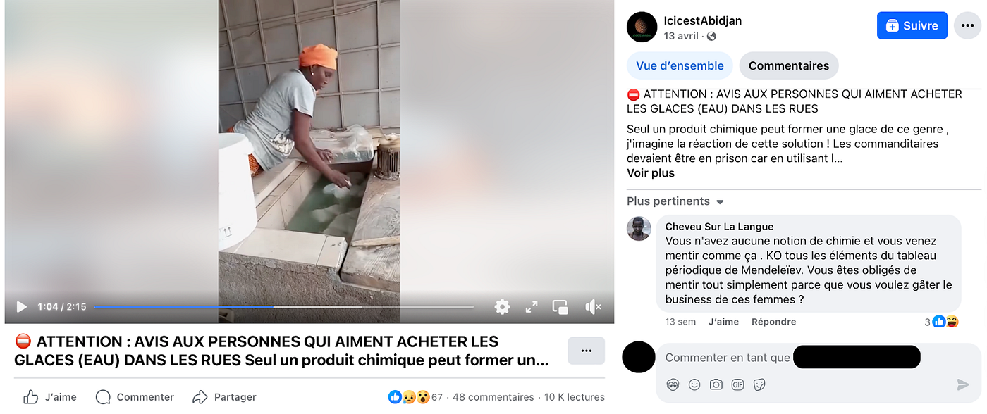 En légende de la vidéo, la page IcicestAbidjan qui l’a publiée, met en garde « les personnes qui aiment acheter les glaces dans les rues ».